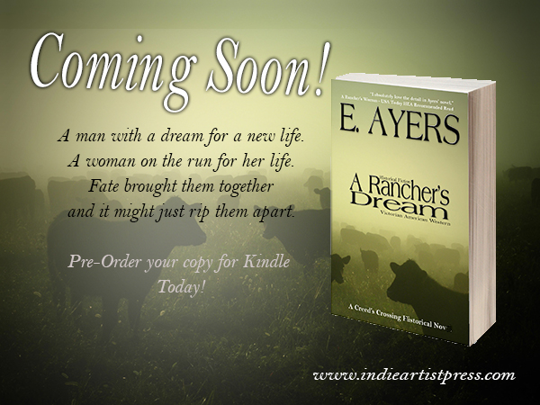 Second, for the first time ever here at the Elfyverse blog, I’m going to give away a book for a friend, E. Ayers. Her newest novel is called A RANCHER’S DREAM, and it’s a Western set in the U.S. during the Victorian Era. (Say that five times fast. I dare you.)